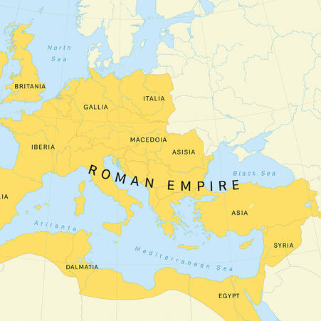 در جنوب، مصر باستانی با تمدنی عمیق، اما زیر سلطه روم.ـ
