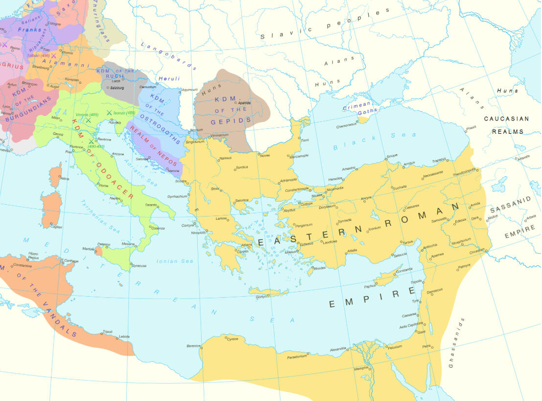 در شمال، اقوام «وحشی» ژرمنها و گوتها.ـ